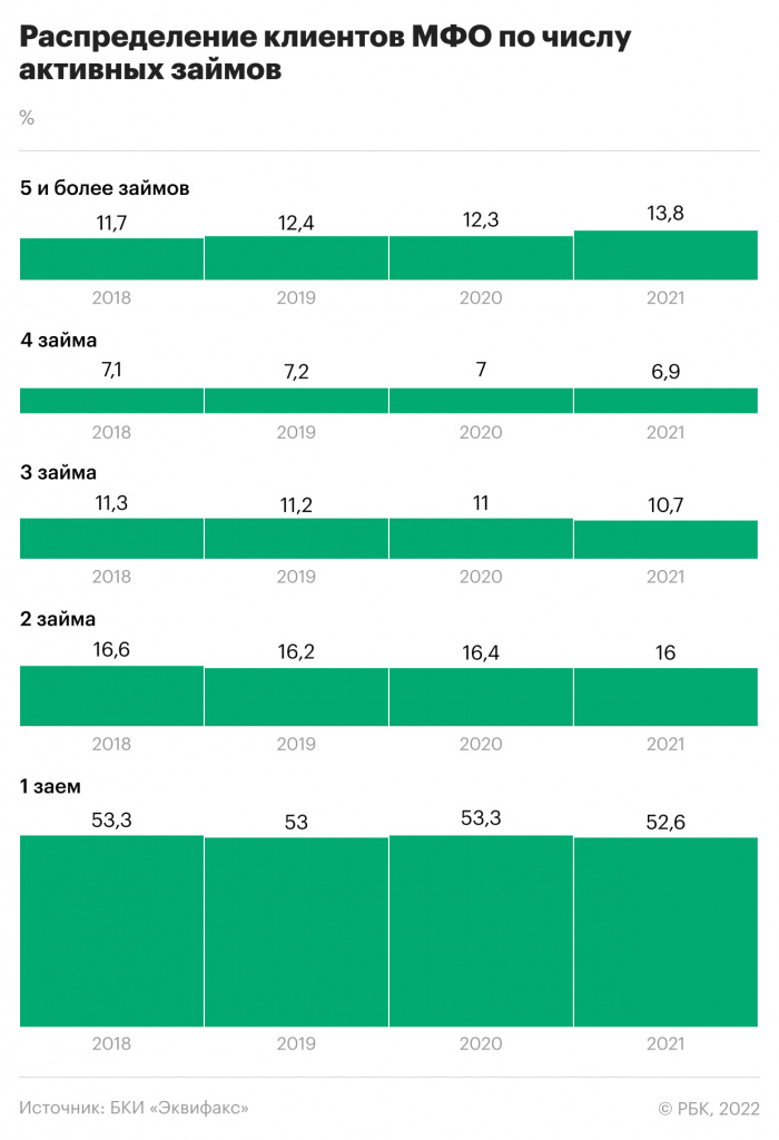 Сколько россиян набрали больше пяти микрозаймов. Инфографика