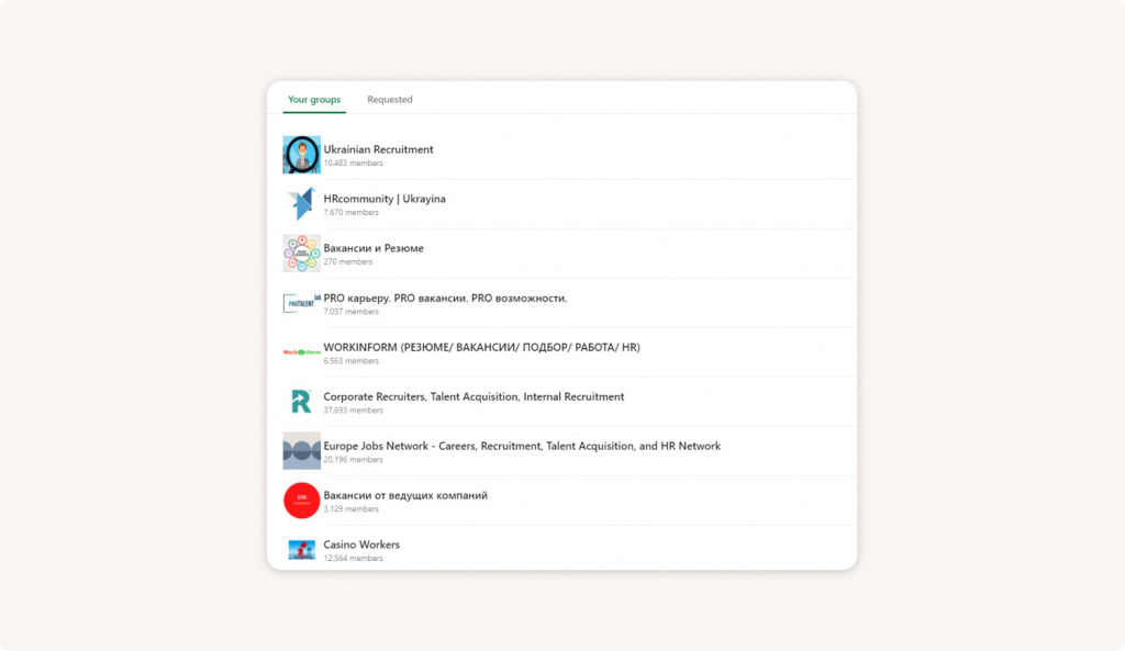 Для размещения вакансий рекомендую выбирать профильные группы, нежели группы для рекрутинга. В группах, направленных на рекрутмент, лучше всего поддерживать коммуникацию с коллегами и получать новую полезную информацию. В группах формата «Вакансии и резюме»”, «Вакансии удаленно» и т.д. лучше размещать подборку из вакансий или же проводить ручной поиск кандидатов, которые состоят в этой группе.
