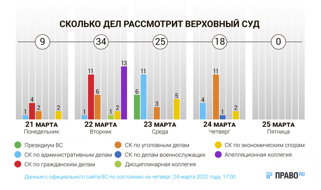 Президиум рассмотрит шесть жалоб на приговоры по уголовным делам, а военная коллегия разберет одно-единственное дело. В Уголовной коллегии назначено 23 заседания. Наиболее резонансное из них касается истории домашнего насилия из Кемеровской области. Евгений Конради до смерти избил свою бывшую сожительницу, вломившись к ней в квартиру через балкон. При этом за несколько дней до убийства женщина жаловалась в полицию на угрозы мужчины. Но там ограничились лишь профилактической беседой. За свое преступление тот получил 22 года колонии и должен выплатить близким жертвы 2 млн руб. Конради не признал свою вину и называет дело сфабрикованным.