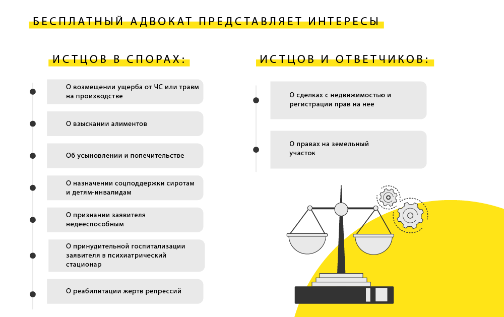 Адвокаты могут бесплатно проконсультировать, а также составить необходимые документы по таким вопросам как: