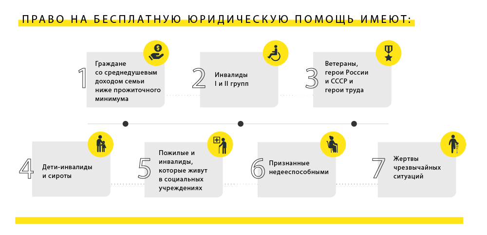 Кроме того, регионы вправе самостоятельно устанавливать дополнительные критерии оказания бесплатной юрпомощи. Например, в Москве с 2017 года ее предоставляют владельцам квартир в домах, попавших в программу реновации, в Алтайском крае вымирающему коренному народу кумандинцев, а в Томской области устную консультацию без оплаты гарантируют всем неработающим пенсионерам.
