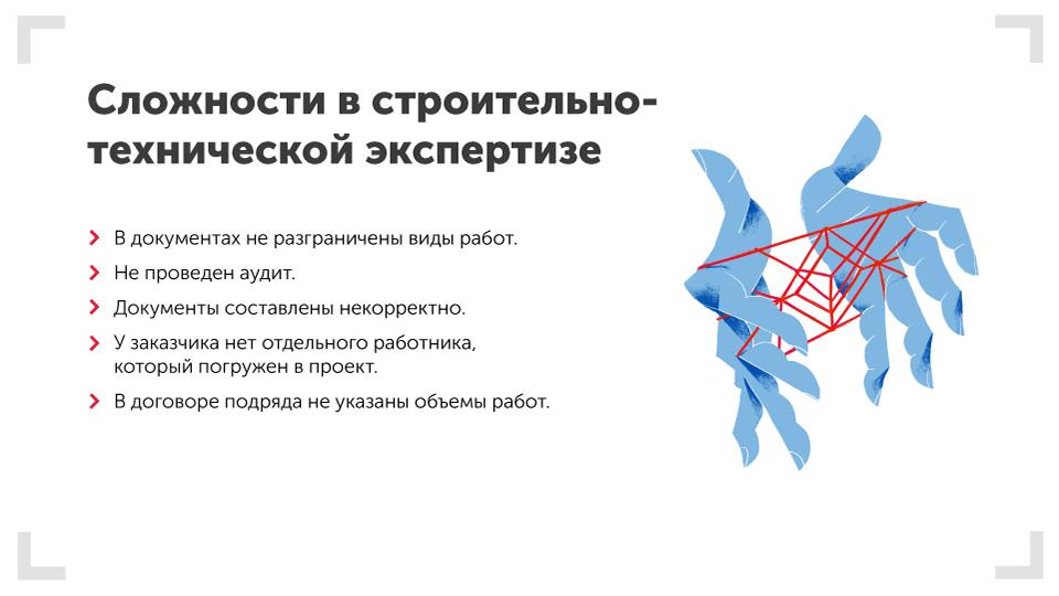 - В документах не разграничены виды работ. Другие подрядчики должны не только достроить объект, но и устранить дефекты после первого. Но в документах эти работы часто не разграничены.