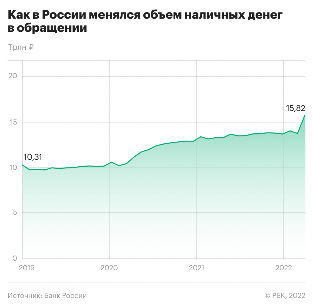 «Возврата наличности в банковскую систему я бы не ожидала на обозримом горизонте. Мы видим, что даже те деньги, которые россияне перевели в наличную форму в пандемию, не вернулись в систему за два года», — комментирует она.