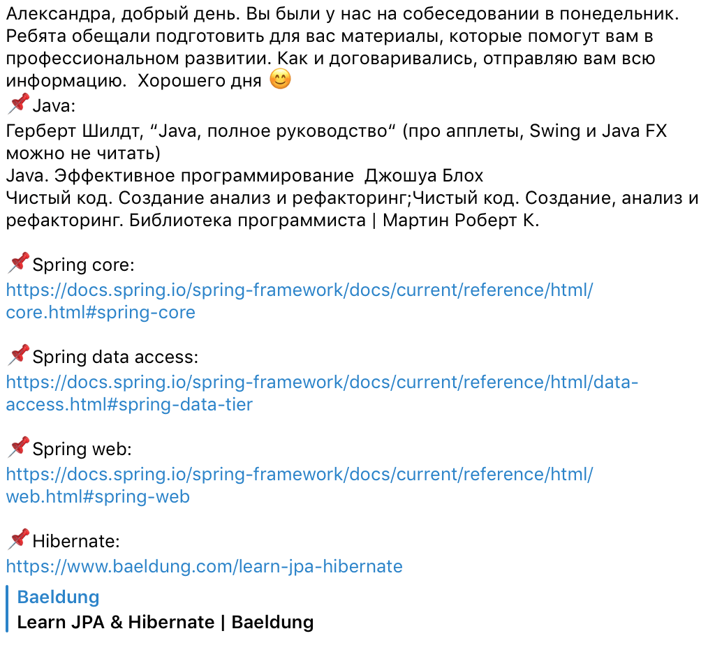 Вот как может выглядеть список материалов для профессионального развития джуна: