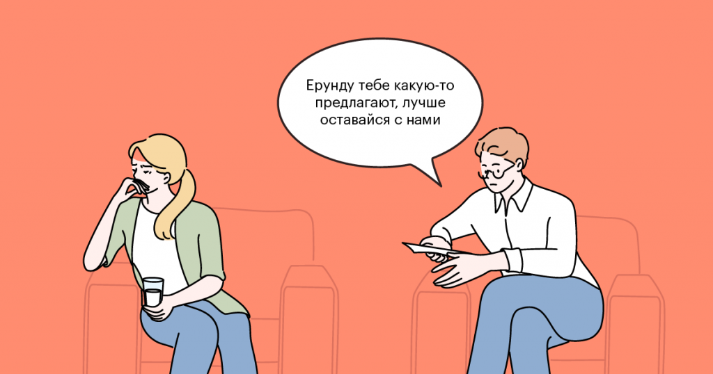 - Не обесценивайте выбор коллеги: говорите про свою компанию, а не рассказывайте, как плохо у других.