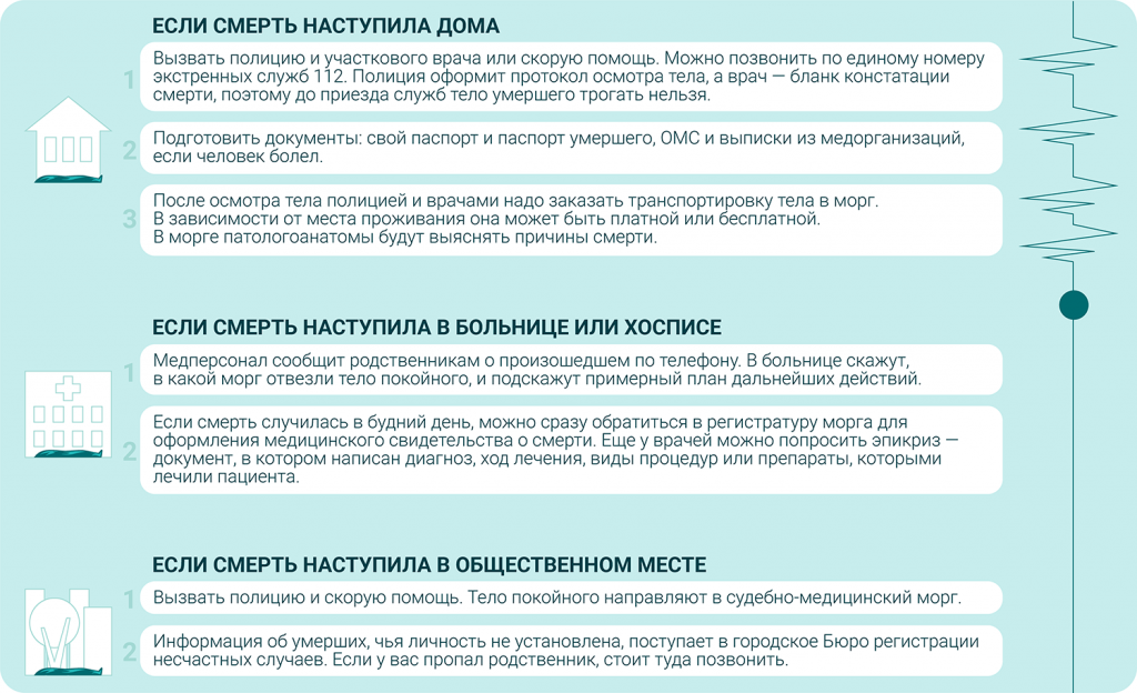 Мошенники в ритуальной сфере не редкость. Поэтому при выборе похоронной службы юристы советуют обращаться в муниципальные или проверенные организации, которые работают не один год. Еще лучше — заниматься похоронами самостоятельно или попросить об этом родственников и друзей. Если вместе с полицией или скорой к вам пришел ритуальный агент, необязательно соглашаться на его услуги. Такие лица покупают информацию о смерти людей, а дополнительные расходы закладывают в цену своих услуг.